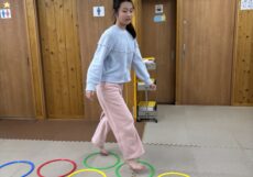 体を動かしているのを見て一緒に真似をしてみる、体を動かすことは、脳と筋肉の感覚統合に効果的といわれています。体の色々な部分を一度に動かすことによって、脳にも刺激を与えているのです。体を自分が思うように動かせるようになるというのが運動療育の大きな目的です。