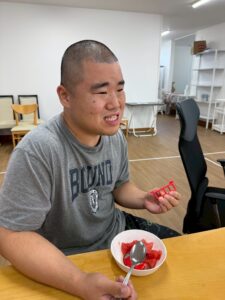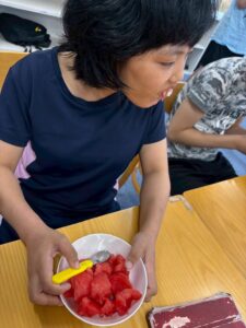 甘いスイカ🍉を食べて夏を感じていただけたら良いなと職員一同感じました♪