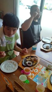 おいしそうなハンバーグにみなさん嬉しそうな表情で・・・