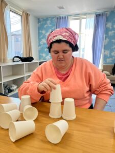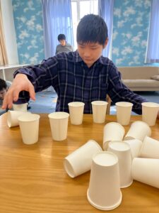 週のレクリエーションで「紙コップタワー」を作ったり・・・