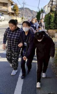 駐車場に車を停めて一列に並んで出店までお散歩です🚶