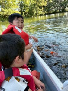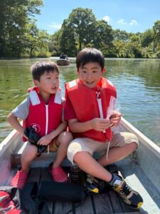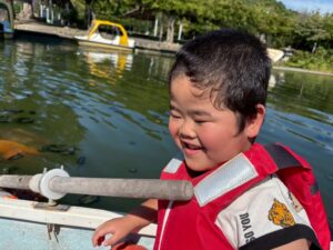 初めて手漕ぎボートに乗る子は、はじめは「怖いかも…」と言っていましたが、