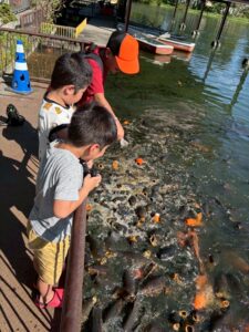 鯉がたくさんいたため大はしゃぎで餌をあげていました😆