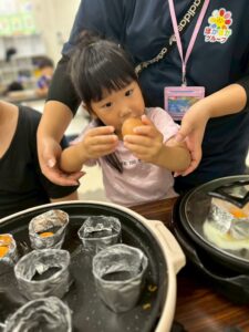 目玉焼きを楽しそうに作る子、何度もおかわりをする子、大成功のイベントになりました🎵😆💖