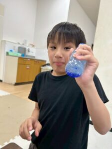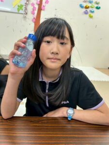 容器の中に洗濯のりや装飾用のビーズを入れてできたキラキラした中身を見て、