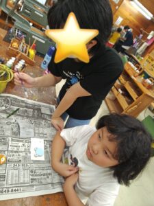 お姉さんが、やり方を教えながら一緒にやってくれています💕
