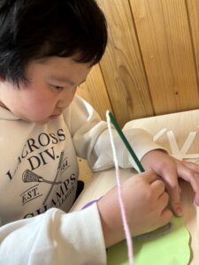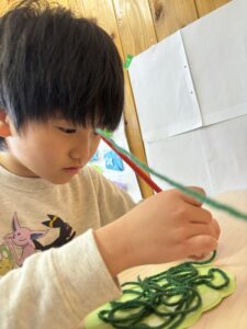 鬼の製作では毛糸を使い、鬼の髪の毛を表現しました🌟