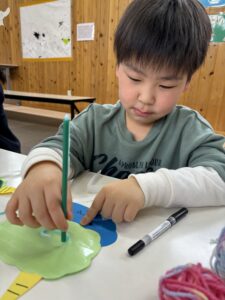 鬼の製作では毛糸を使い、鬼の髪の毛を表現しました🌟