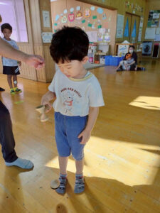 職員やお友だちと楽しく玉を打ち返して体を動かしましたよ!