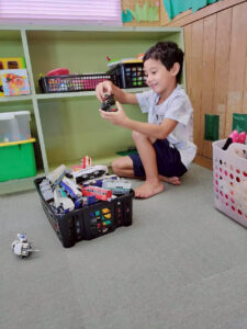 たくさんのおもちゃがあり自分の気になったおもちゃを