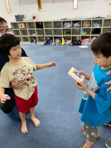 今日の主役のお友だちをみんなの前に呼ぶと、