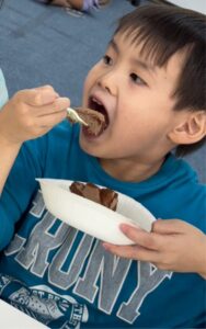 甘くておいしい🍫チョコレートケーキ🎂にみんなニコニコ😊