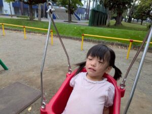 ブランコでは、「1人でこげるよ!」と自信満々な子ども達で