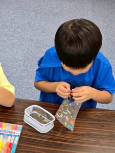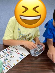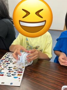 中には、シールの位置が曲がらないようまっすぐに貼る子や、