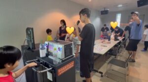 自分の番が来ると、マイクを手に取り熱唱する子ども達 ♬~♪