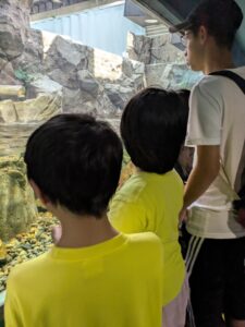 みんな、食い入るように水槽を眺め、気持ち良さそうに泳ぐ魚たちを真剣な表情で見ていました😉