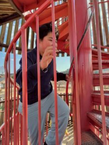 高い所からスタッフの名前を呼び、「すごいでしょ~」と得意げな顔をするお友達も😊